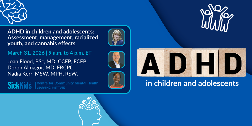 SickKids Centre for Community Mental Health Learning Institute is approved by the Canadian Psychological Association (CPA) to offer continuing education (CE) hours. The number of eligible CE hours are outlined within each program. SickKids Centre for Community Mental Health Learning Institute maintains responsibility for the programs.