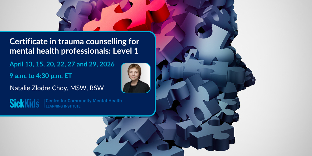 SickKids Centre for Community Mental Health Learning Institute is approved by the Canadian Psychological Association (CPA) to offer continuing education (CE) hours. The number of eligible CE hours are outlined within each program. SickKids Centre for Community Mental Health Learning Institute maintains responsibility for the programs.