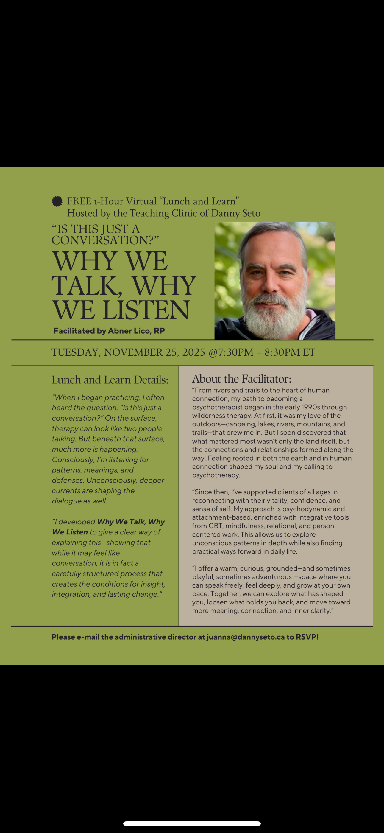 The topic will be on “ ‘Is this just a conversation?’ WHY WE TALK, WHY WE LISTEN” and will be led by supervisor-in-training, Abner Lico, RP.
