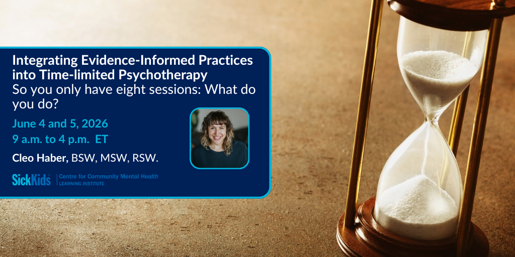 SickKids Centre for Community Mental Health Learning Institute is approved by the Canadian Psychological Association (CPA) to offer continuing education (CE) hours. The number of eligible CE hours are outlined within each program. SickKids Centre for Community Mental Health Learning Institute maintains responsibility for the programs.