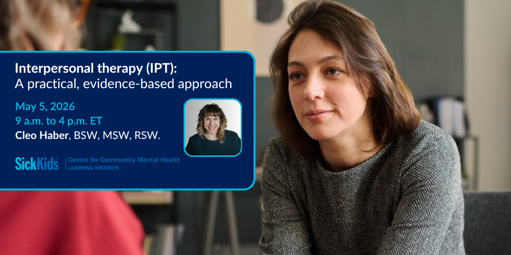 This one-day webinar is designed for front-line workers and mental health clinicians who work with youth (16+) and adult clients in a variety of settings. Participants will learn the basic principles of IPT and how to structure a course of IPT psychotherapy. The programming will cover the beginning, middle and end-phase tasks of IPT therapy. Participants will learn about the focal areas specific to IPT—Grief and Loss, Role Transitions, Interpersonal Disputes and Interpersonal Deficits/Social Isolation and the interventions best suited to each focal area.
