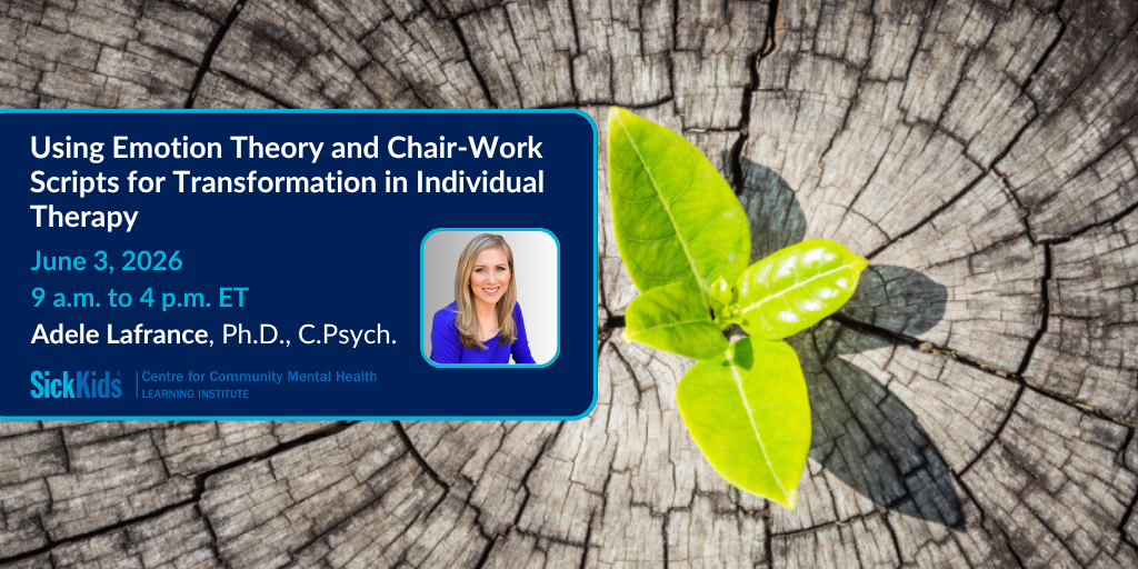 SickKids Centre for Community Mental Health Learning Institute is approved by the Canadian Psychological Association (CPA) to offer continuing education (CE) hours. The number of eligible CE hours are outlined within each program. SickKids Centre for Community Mental Health Learning Institute maintains responsibility for the programs.