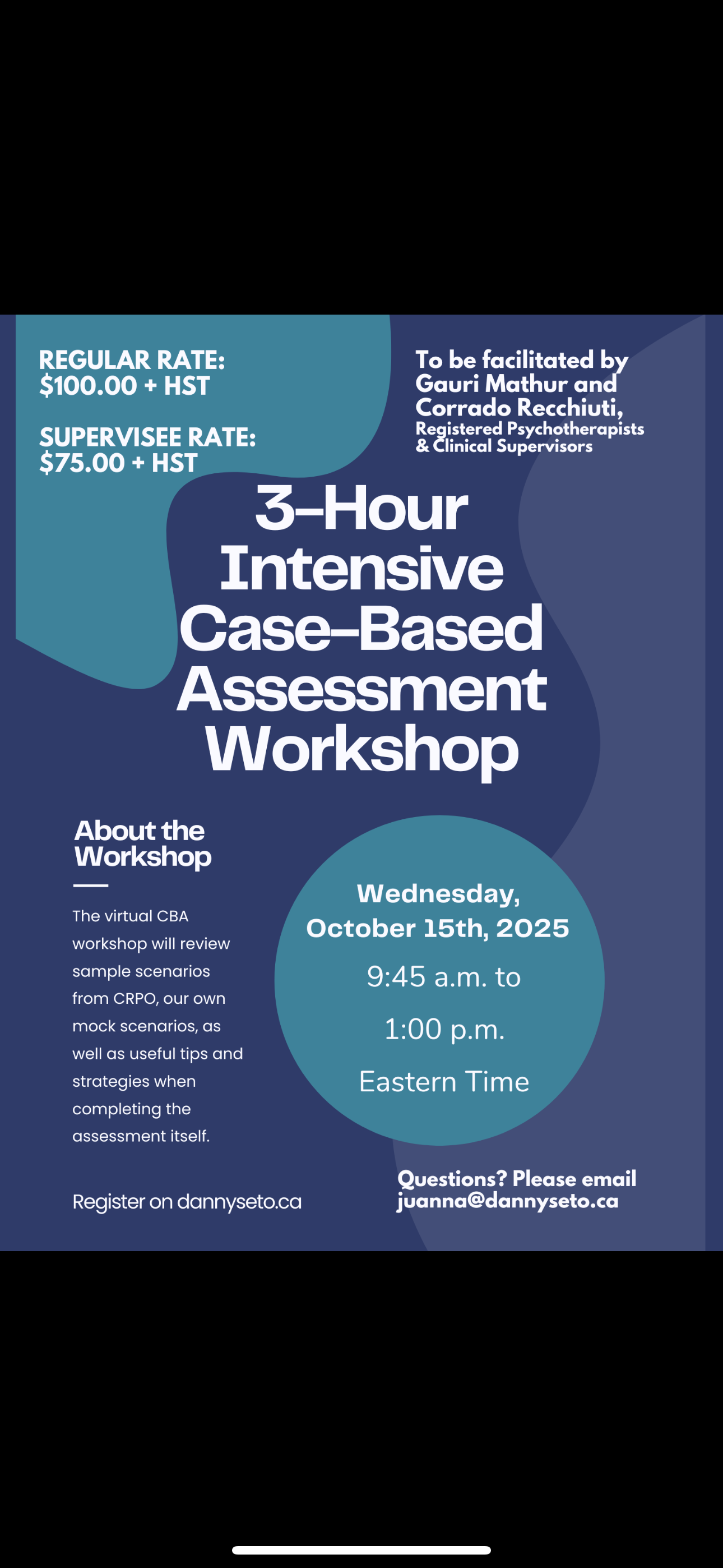 The facilitators will demonstrate, using a scenario from the CRPO, various techniques and strategies that the Clinical Director, Danny Seto, created. These techniques and strategies are designed to cater to various learning styles as well as those that are neurodivergent.