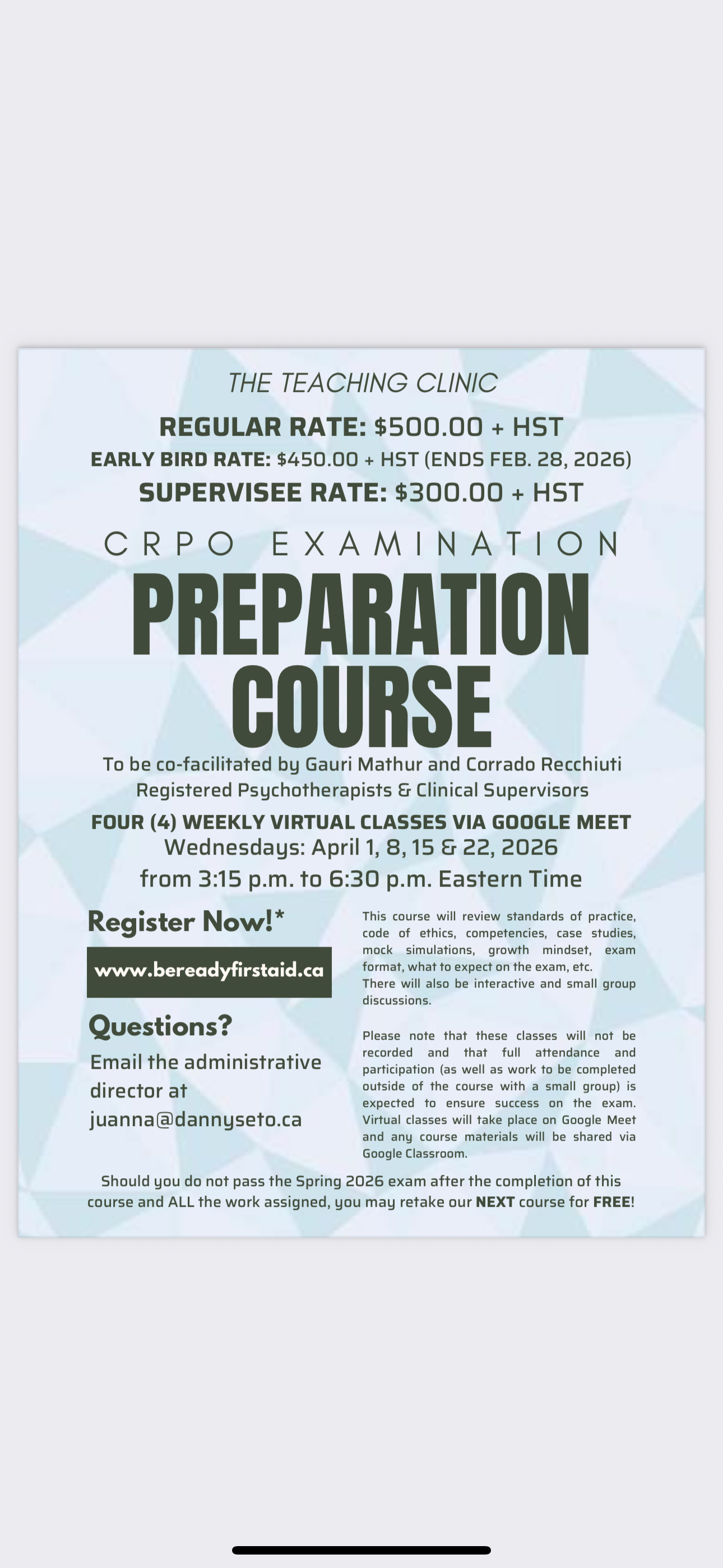 THE TEACHING CLINIC is once again offering its virtual CRPO Exam Prep. Course this Spring!