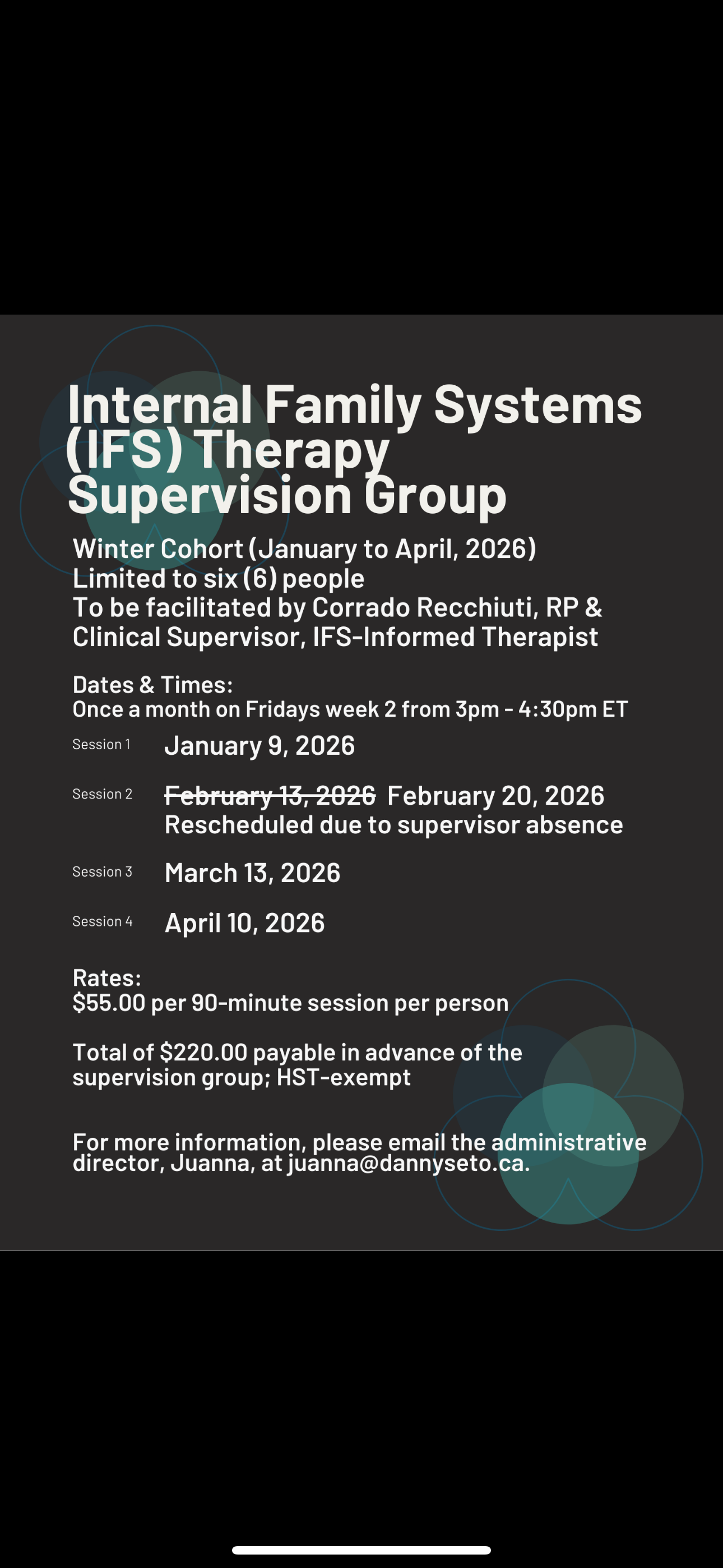 LAST CHANCE TO REGISTER FOR THE SPECIALIZED SUPERVISION GROUP WITH A FOCUS ON INTERNAL FAMILY SYSTEMS (IFS).