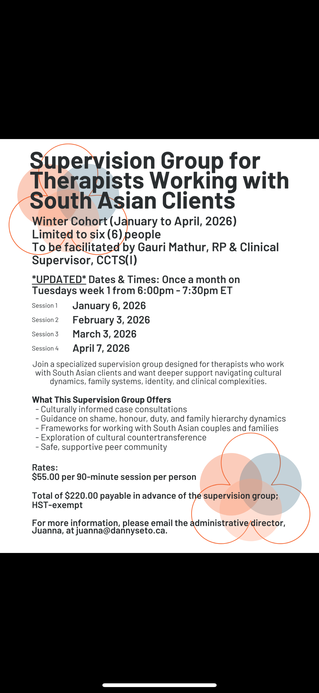 LAST CHANCE to register for the specialized supervision group for therapists who have South-Asian clients.
