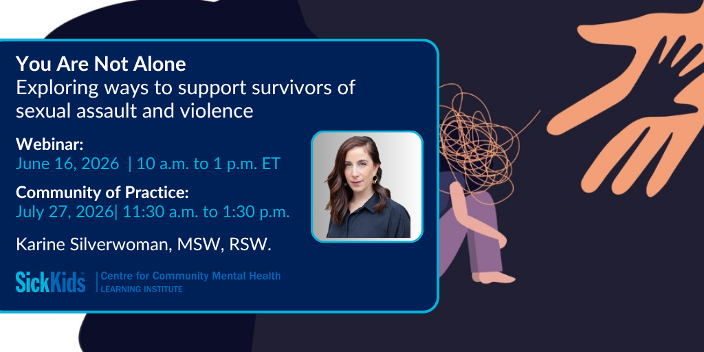 Please note: This Community of Practice is intended for educational purposes only and should not be considered supervision or consultation regarding specific cases. SickKids CCMH Learning Institute and Karine Silverwoman assume no clinical responsibility for the application of the information shared.